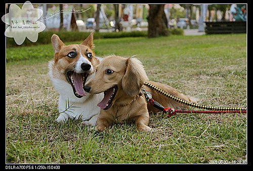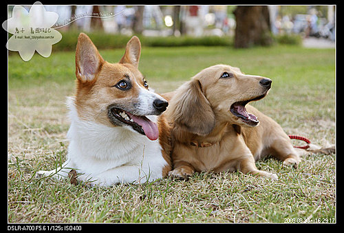 才趴在草地上,兩個寶貝就打起哈欠了..... (啊是有這麼累嗎??)