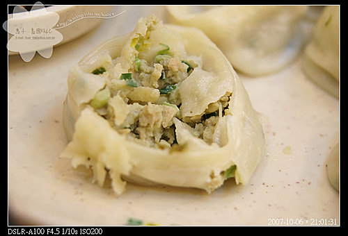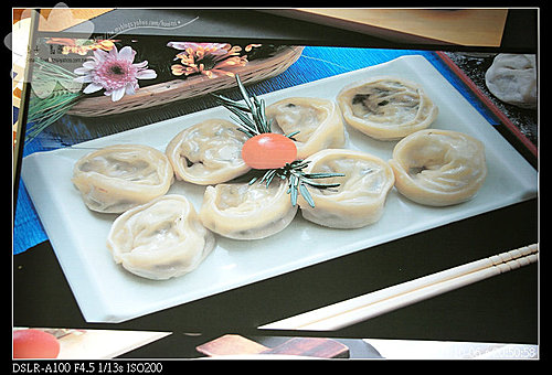 看起來很像燒賣,但吃起來像極了水餃吶! 沾上特製醬料後,非常好吃唷!!