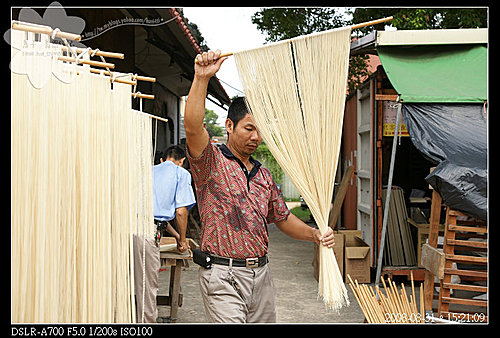 原本我是躲在角落遠遠的拍麵線及收取過程,結果還是被泉珍麵線的老闆發現了....