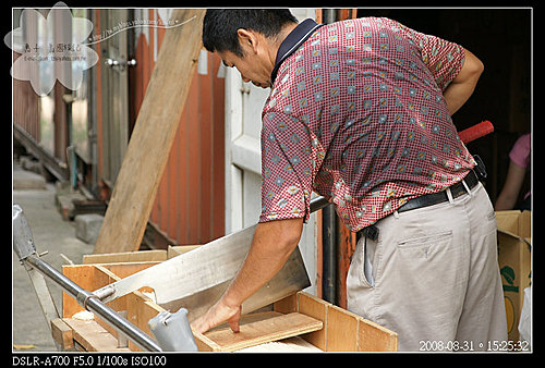 老闆這兒還保留了古式機器,這可要仔細的分割、才能切得漂亮喔!!