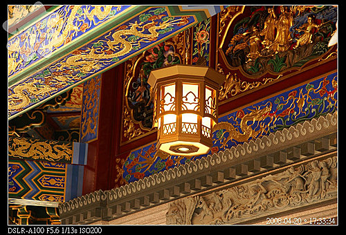 而屋簷的色彩與木製吊燈,更是鮮豔、華麗,看起來真的相當漂亮。